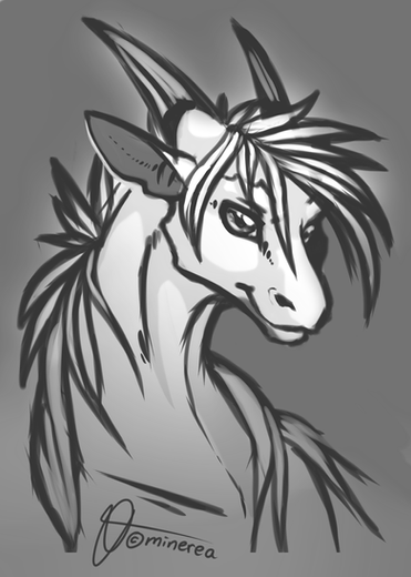 was derping around with values in design again, added shading too! It’s not so visible, but I’ll work on that more next time; his underbelly fluff is a bit ligher, so is his snout and inner ear, his mane is darkerArt(C)me