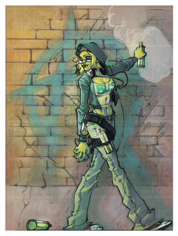 Basically I was inspired by looking at all the graffiti in the downtown area where I live, and I can so see Aaron pulling off something like this in his spare time. It suits his cool personality.