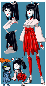 Nope a woman. She's like the female version of Rokusho, much like how Blak-Beetle is the female Metabee.