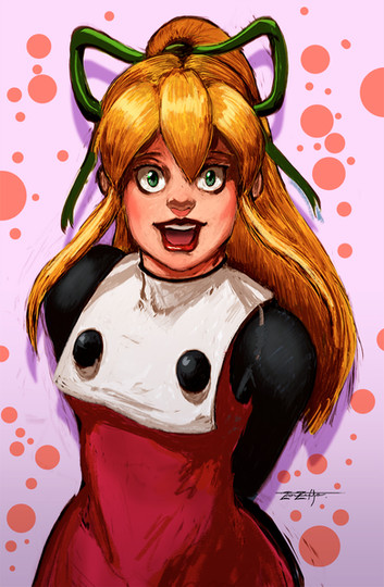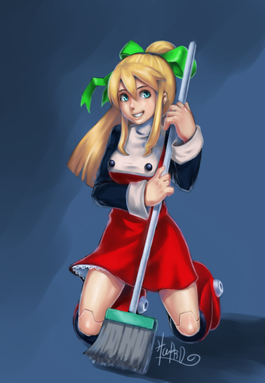 I like the composition. Lots of intense diagonals for unassuming shapes like Roll's ribbon and broom handle. :>