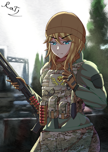Commission i did for a friend (nicknamed "Dysthymaeon"), an operator named "Rosa", based from his friend.The rifle featured here is a modification of the LVOA rifle with MLOK compatibility and larger gap in the RIS that cuts down weight and cool the gun quicker. Mounted with Eotech and magnifier sight, the gun is also attached with three-point sling.