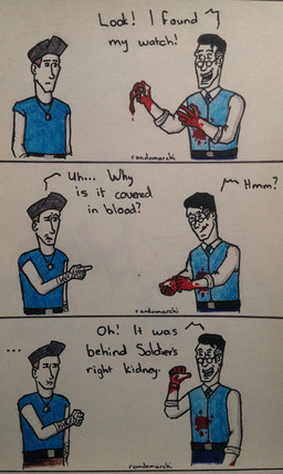 Done on my notepad over some biochemistry stuff. Think I was freaking out at the moment about university in general. Referenced a scene from the End of the Line TF2 film/animation.Related content