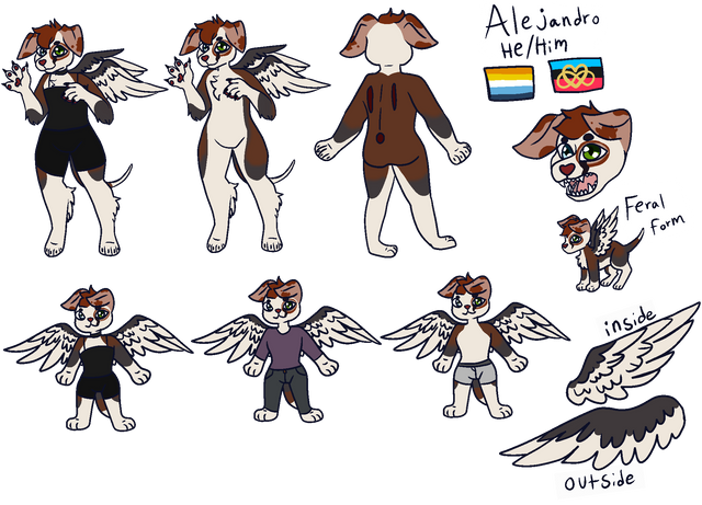 Can you tell I love doing reference sheets yet? Lmao- anyways he has a very VERY small backstory, he used to be a demon but decided to try and redeem himself to become an angel, he had earned his wings but he still has a horn instead of a halo and he still has yellow-ish eyes (this kinda represents me in a small way but I won’t get into it) anyways he has a TINY redesign with its colorsRelated content