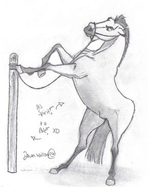 This piece is for =Wuschel92 's contest because :RA: Blue Eyes Don't Lie[link] , has yet to compete this is his training. The rider is Loveday Gibson.I drew the horrific background and it is my best one so far