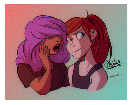 ~SkaterSkittle 's half of our art-trade. She wanted Gloria and Addy being adorable and WELL this happened.