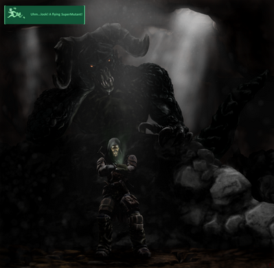 The Knight stared -unsure if he was just imagining the ' greet ' when the Creature opened it's mouth. Despite the darkness of the shade, the Knight noticed rows of several large blade-like teeth, the sight making him swallow involuntarily...but his attention on the teeth was immediately shifted away as a sound -a word came form the Creature's mouth.