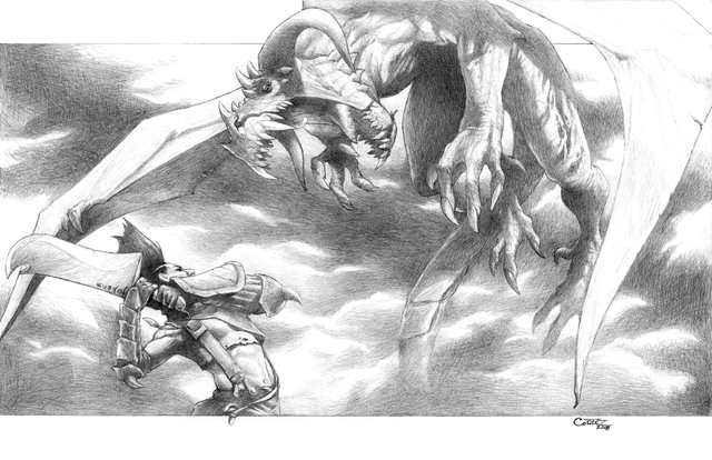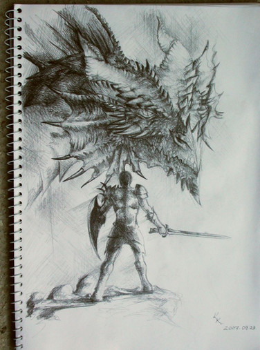 The Knight stepped backwards slowly, still holding the sword up...but he knew, against -that...his sword was as much good as a grass stem.
