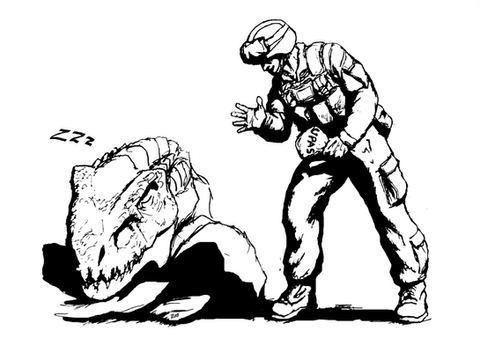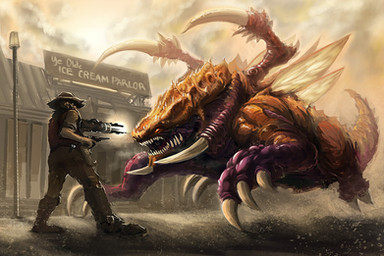Just a dude and his Deathclaw.Started working on this back in 2016, and it got buried in my archives...dug it out and finished it yesterday.