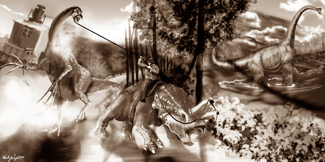 This makes me think haw they should make a pretty cool movie. We rarely ever get to see dinosaurs or genetic engineering outside the park, let alone get a movie about it.