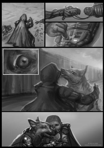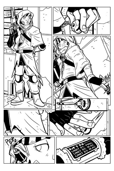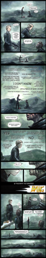 The first page of Rising Beyond in trad art -obviously lolI've never really worked on complex stuff like background scenery in trad style -in this case sky, clouds etc- so the background is a bit -bland, but i'm working on it, the next page should be better i hope.
