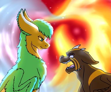 Ares kept his ears flat the whole time Solstice was talking. Each time he looked away, Ares scoffed and rolled his eyes at the other gro. Clearly, he lived in a world of nothing but sunshine and rainbows. Also clearly, he didn't realize that Kun was also a complete brat when she wanted to be.