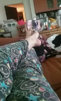 Lisa just relaxing on the bed.(Please show respect to both me and my girlfriend by not being graphic about her feet or being rude about them)