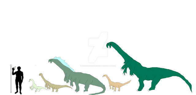 Early Jurassic, South Africa. Yes, this is an entirely new episode - since the Chinle plateosaurid is nowhere as big as it was portrayed in WWD, I wanted something that can give a good transition to the Morrison giants, and I knew exactly what that was.I do not own the references used for any of the animals; they belong to Aardonyx's description (HG) and Scott Hartman (everything else).