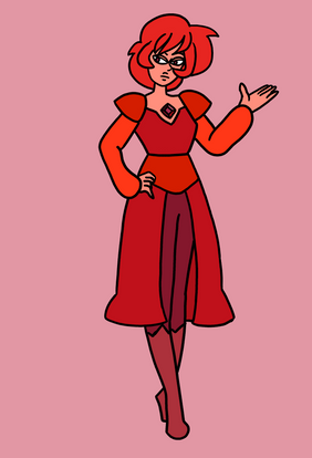 This is my design for Red Diamond. Her fire-shaped Diamond Aura can strengthen the power of the gems around her, or suck up their power so she can use treir abilities. She also has bubble-powers like steven, and her gem-weapon is a shield.Red Diamond is a lot more responsible and serious than Pink-diamond, and a bit more ready-for-battle than Steven. She is a very smart and strategic gem and care’s a lot for both homeworld and organic life. therefore, she doesn’t get along with the other diamonds that well.