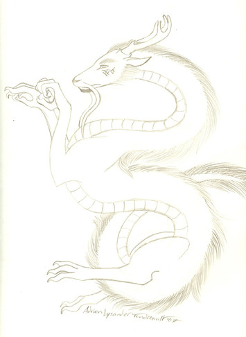 My first attempts at an eastern dragon...*dons armour and prepares to be shot down in flames* I usually draw their chunkier western cousins so please be kind. However constructive critique is very welcome.Sorry for the bad scan.
