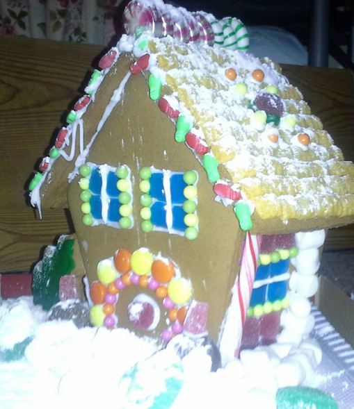 Gingerbread house, crafted from scratch using a recipe from Good house keeping for gingerbread men and a little bit of imagination.Possible tutorial coming later...dependant upon level of revision done.