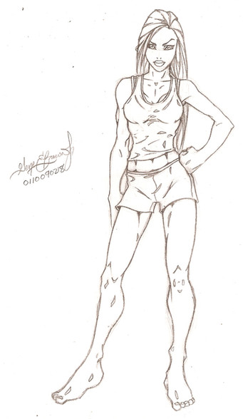 First drawing of 2009 after a considerable drawing hiatus. Please be gentle as this is really an attempt to kick start rather rusty drawing skills.I'm aware that her hands and feet are off.