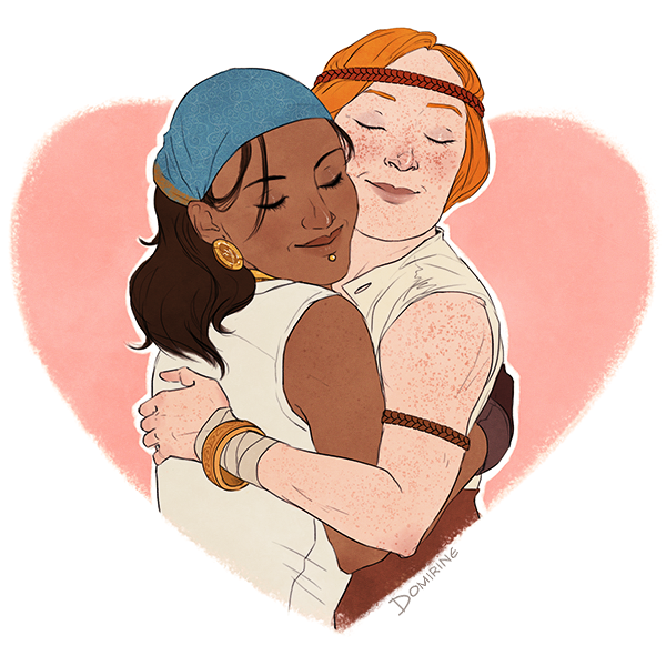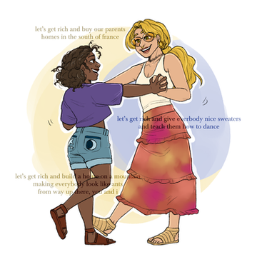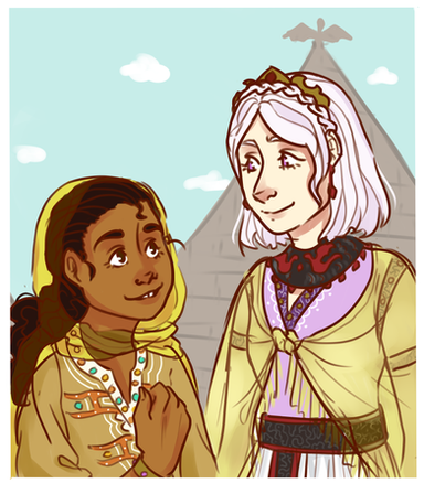 Destiny is a daughter of Apollo, and one of Celeste's best friends! They match in opposite ways, and it's very sweet.Destiny is an NPC in our game, run by Amber! Her art is here: slimgems.tumblr.com/