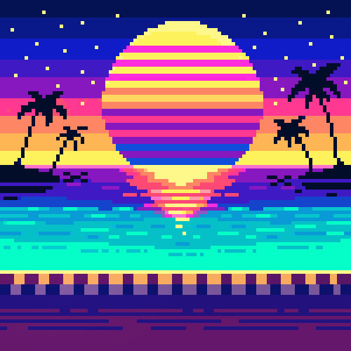 #beach #palmtree #palmtrees #pixelart #sunset #tropical #vaporwave #pixel_dailies