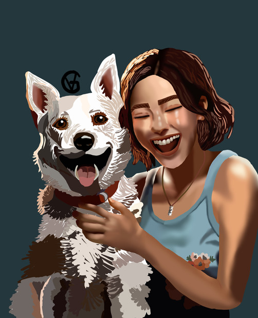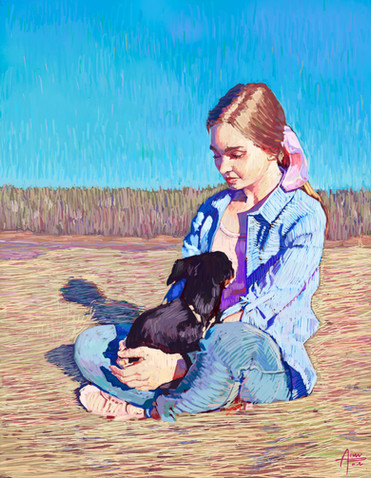 A portrait of a friend's dog and... I think... her niece? I was only asked to do the dog but when I saw the reference for this I couldn't resist it.