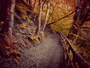 I love how the scenery is organic with greens and browns making the image a warm environment also the crisp cooling of blue in the stream excellent work is this been photoshopped after or did you get the right position of natural light and time?