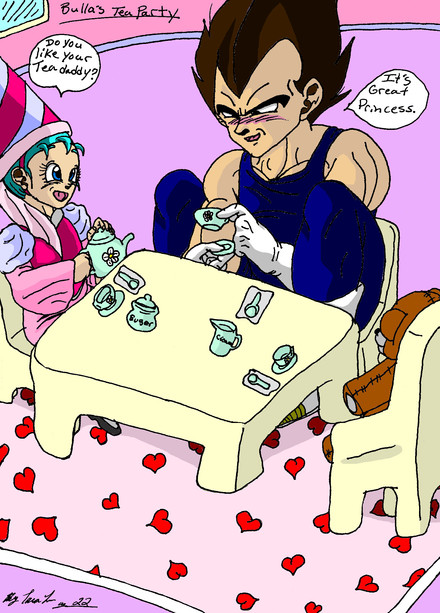 Haha; this is so, so awesome! Nappa must be like "Oh, not that shit again!". (Oh God, I just thought about what if he already had to play tea party with Vegeta when he was a kid... I... where did that thought come from?! XD)