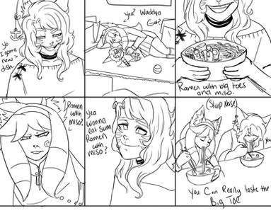 Dud e, I don't even know how to comment on this? I think it's wonderful and I'm kind of speechless. The layout was, "man I'm dead tired," check my messages before bed like, "huh Tia mentioned me in something wonder what it could be, character, ships?" But no, it was me and I was like whshehshe who would draw me ever? And it made me really really happy to see myself drawn, and it's such an honor that you would decide to take time out of your day to draw this kind of gift, and I absolutely adore it and all of the other gifts you take the time to create for me because I know you put your heart and soul into everything you do and I wish I was able to give back more than I do. Thank you for being wonderful, Tia.