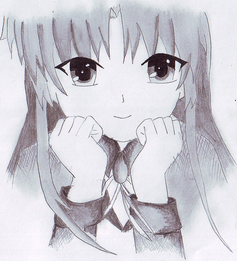 Irie from Angel Beats!while fixing the quality on Photoshop, i decided to add the color... i personally think it adds life to my colorless portrait of Irie ^v^