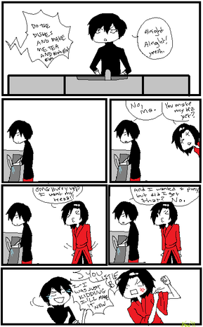 Inspired by a chat withOk, usually my laptop tries to piss me off when I make these comics, but this one is actually ok. My 4rth comic made on laptop and I'm getting better! Yay!