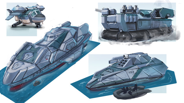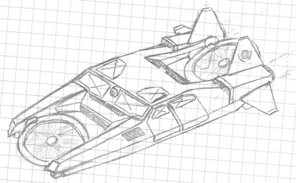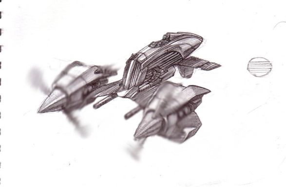 I really like how the design is different from the run of the mill sci fi ship concepts. The back ground kind of seems to be on the same plane with the aircraft though, so maybe desaturate the background to push the foreground subject to the front. Either that or you could reduce the clarity of the lines in the background to create a bit of aerial perspective (just some suggestions). Pretty awesome job over all though.