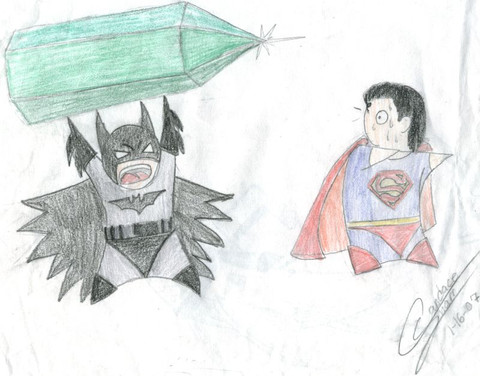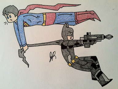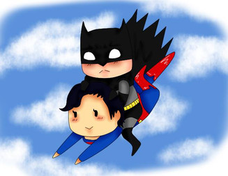 ok so theres Superman flying ad holding batman (cuz he cant fly XD)and theyre getting mad at each other cuz batman doesnt want no help and supes is just tryin to help him