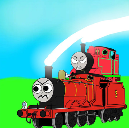 The next morning Cian and the other engines awoke from the sheds. Suddenly James got in front of the turntable. “ALRIGHT CIAN, if you think you can take my job, then maybe we can settle this in a competition!” The other engines looked disappointed in James, but the Cian grind. “Alright lad, I’ll play yah little game” He boomed, “and if you win, I’ll leave the railway. But if you lose, you’ll have to leave and never return!” He other engines looked worried. “Don’t do it James!” Called his friends. “But James was too concentrated in beating the big red tender engine.