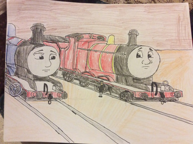 “Hey!” Called James, “who are you?” The engine was big and red and he spoke with an deep Irish accent. “I be replacing yah lad” the engine spoke. James froze. “R-replaced?” He said softly. “The big engines wished steam and puffed away. “See yah later lad!” The big engine said rudely. James watched as he puffed away. “bah!” James snorted, “the Fat Controller would never replace me…would he?”