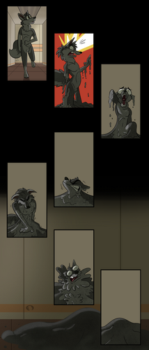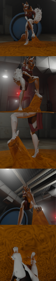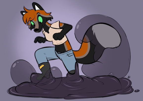 Stacey ran out of options, she lifted her left leg with all her might, only to be forced down by the slime. Her foot was forced down onto the body of the slug, causing it to unleash the same goo from its body. The slime splattered and seeped between Stacey’s toes. Stacey blushed, “o-oh dear…” as the slug began to spit its goo at the wolf's exposed toes. Stacey blushed a bit, scrunching her toes against the gooey culprit, though the slug just crawled away from their grip. It climbed over Stacey’s right pair of toes, completely gluing them together. The slug left the poor wolf in a now even bigger pile of slug slime.