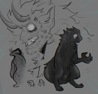 Simple marker practice, and attempted a water elemental but I only had a few water like colors but w/o planning, I just made a water cat/fox/dog thing (I dunno what it looks like)-----