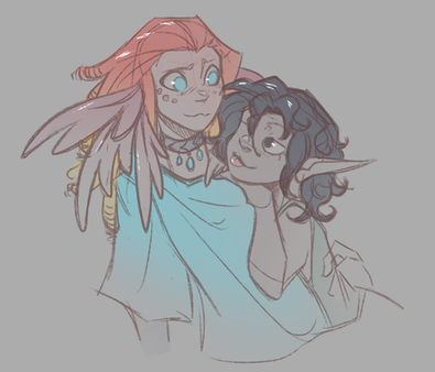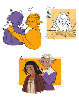 When I was doing the redraw I sketched out a small thing and decided to finish the sketch/ use it to practice human figures (I know that I have a while to got) but it was fun enough.I also used this yo design one of my Dnd characters, an elf cleric (she hides her ears, hence why you can't see them :3)