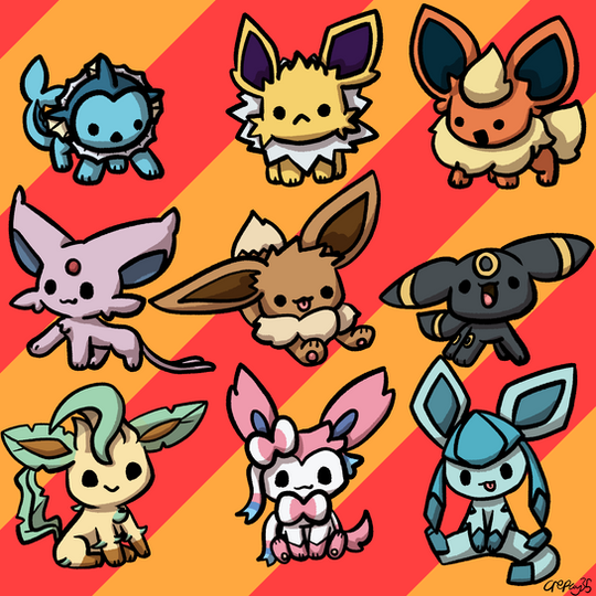 #beans #chibi #cute #eevee #eeveelution #eeveelutions #espeon #fanart #flareon #fox #foxes #jolteon #leafeon #nintendo #pokemon #umbreon #vaporeon #glaceon #sylveon