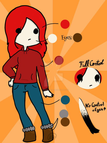 Eye colour: dark green or blood red when in her Scarlet form