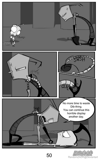 Characters: Zim, Dib, Gir, MiniMoose & A hideous experiment