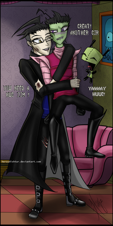 I got bored again and decided I wanted some heartwarming luv between our fav paranormal pair. Not finding the image extremely interesting (cute, but a bit bland and ooc), I did figure out how to do transparency for manga studio in the process of making it though so Its all good.Zim just keeps getting smaller...