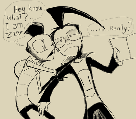 It's also annoying when said person who is reading over your shoulder passes the pages, even though you haven't finished reading it yet. I just noticed Zim's hand holding the page....