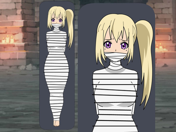 While exploring an ancient tomb, Zero Two accidentally set off a trap, which mummified her. She doesn’t really mind her predicament, since she finds it rather comfy, but still is a bit annoyed that she will have to hop all the way to the exit…Gagged version: