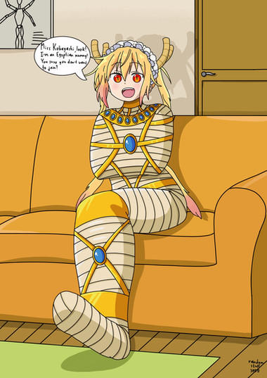 It was a really bad timing for Tohru when she decided to mummify herself again, because Ms. K just came back home. Now Tohru will have a lot of explaining to do. Or, maybe Kobayashi has nothing against the mummy maid?ALL DEPICTED CHARACTERS ARE AT LEAST 18 YEARS OLD