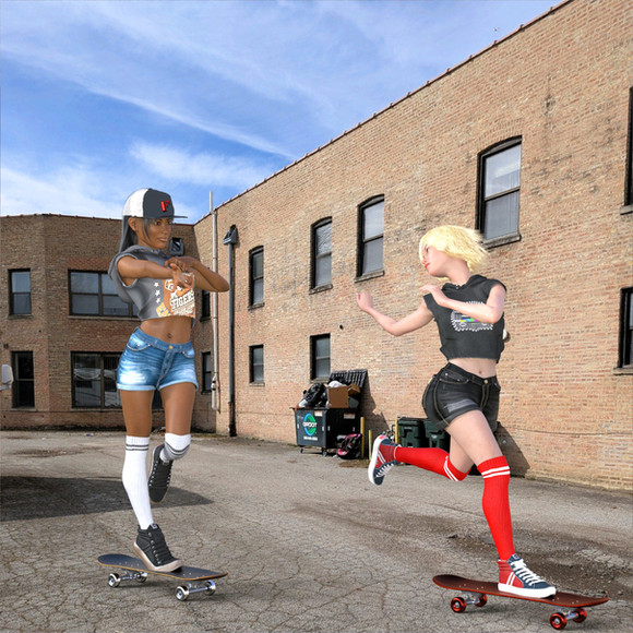 #render #digitalart #3d #girls #originalcharacters #scooter #street #ageprogression