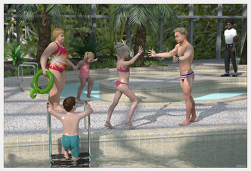 #beach #boy #daugher #flying #girl #hotel #mother #palmtrees #running #sand #shades #speedster #sunglasses #superheroes #swimsuit #bikiniswimsuit #oringinalcharacter #swimtrunks