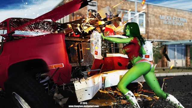 Did this a while back finally got around to touching it up. Big Becka daughter of Big Ben. Some call her BB2, she might be a bit aggressive but she still a hero. Be glad she's hero however make sure your insurance covers metahuman battle damage.Related content