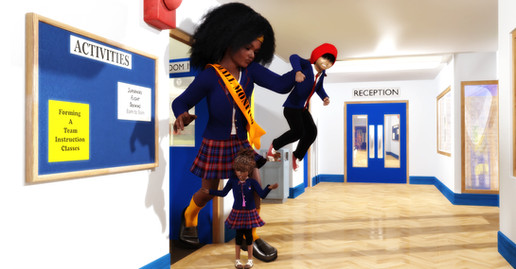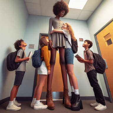 #boy #bunnyears #bunnygirl #girls #hallway #kids #lockers #school #superheroes #trash #giantgirl #africanamerican #hallmonitor #heightdifference #originalcharacters #schooluniform #minigiantess