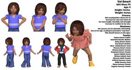 Kia is part of the second group of young preteen heroes I created a little over a year ago. She's a powerful earth elemental with an upbeat personality. She usually hangs around with fellow teammate Kevin the most. Really has a weakness for hamburgers. Her parents are rather average as far their heroic accomplishments. Her two sisters are 5 years old and twins, have yet to manifest their powers.Related content