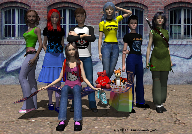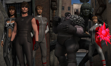 Getting a feel for Poser 12 using the trial version before I buy full version. Feels like a great upgrade but I need a newer PC to really put it through it paces.Decided to match up my new psionic kids with some of original super kids.