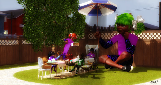 Paige: Well, y'all ain't got to fret me coming after ya for losing. Come on let's go it's almost time for lunch. Oh, don't forget to pat Rosemary on the head she loves the attention.